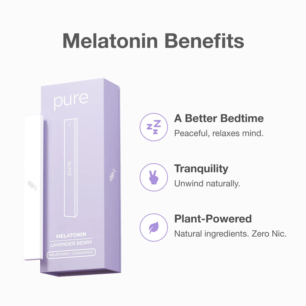 • Melatonin Diffuser (Lavender Berry): Melatonin, Chamomile Extract, Lavender Extract, Propylene Glycol, Vegetable Glycerin